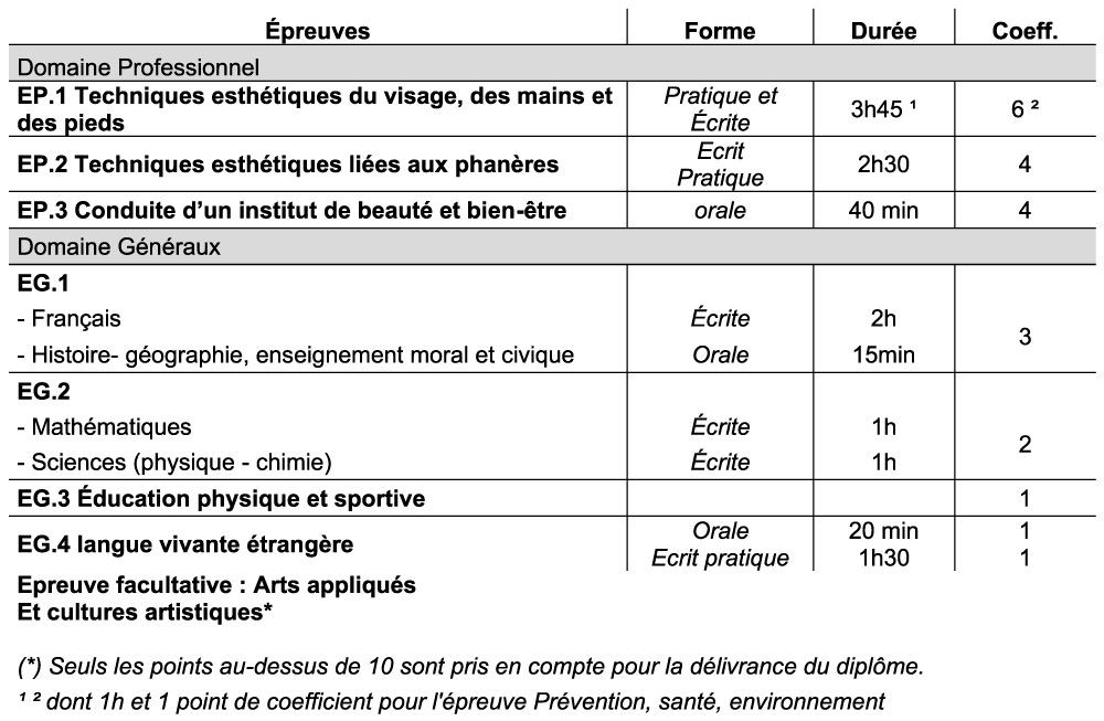 Soins de beauté et bien être. Poste de travail ; techniques de soins visage, cou et décolleté ; conduire une prestation UV ; techniques de maquillage visage ; techniques de soins esthétique des mains et des